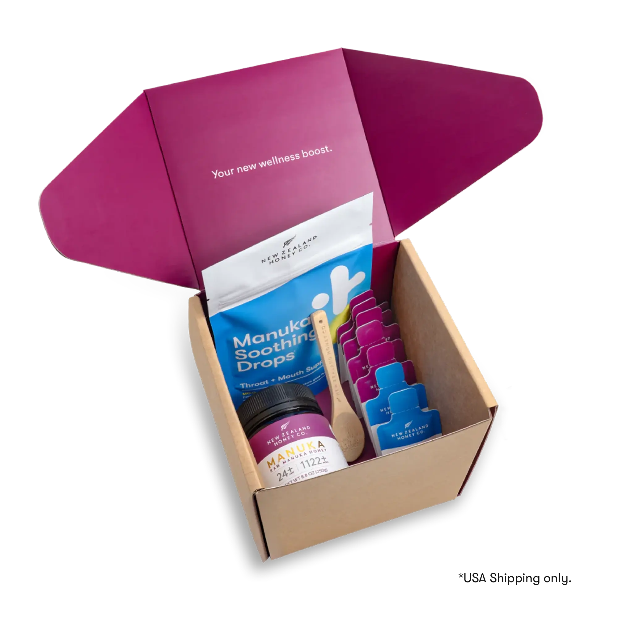 Give your body the wellness boost it needs and experience the powerful benefits of Manuka with our Wellness Boost Kit. Supercharged with antioxidants and anti-inflammatory properties, a teaspoon a day can help elevate your wellness and enhance your daily wellbeing. Use it to reduce inflammation in the body, fight free radicals, and support your immune and digestive health. Make Manuka a daily ritual and look after your body from the inside out.